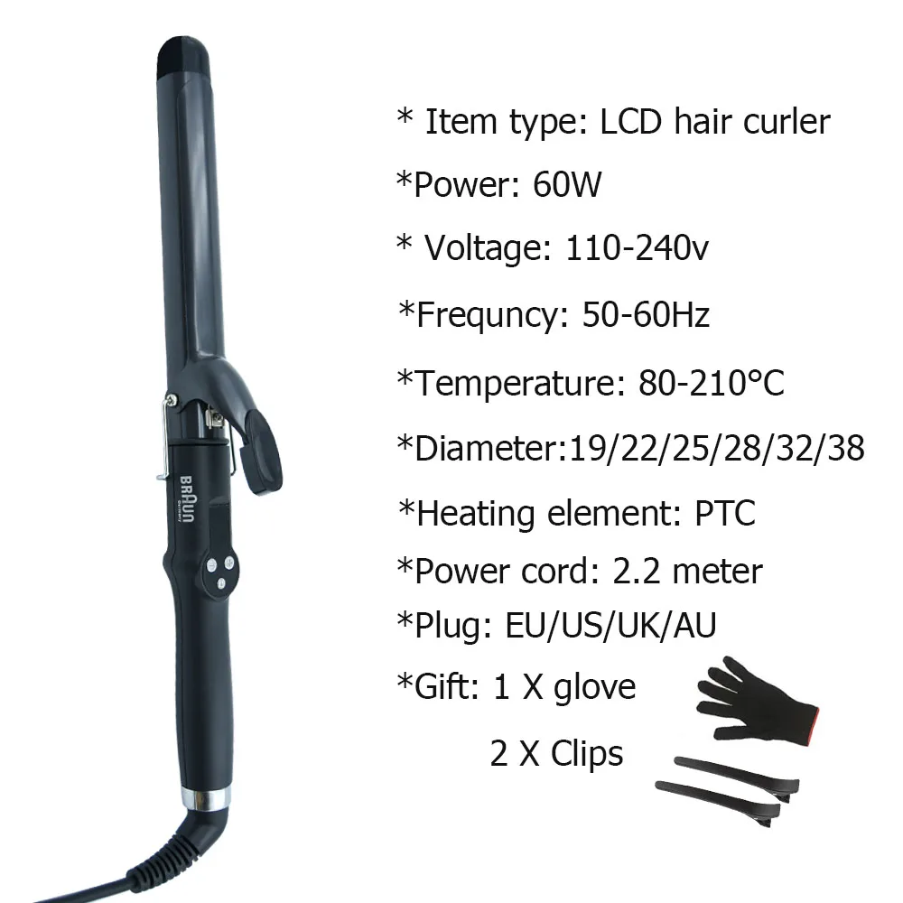 Professional Ceramic Hair Curling Iron 19/22/25/28/32/38mm Hair Curler Roller Hair Styler Wave Wand